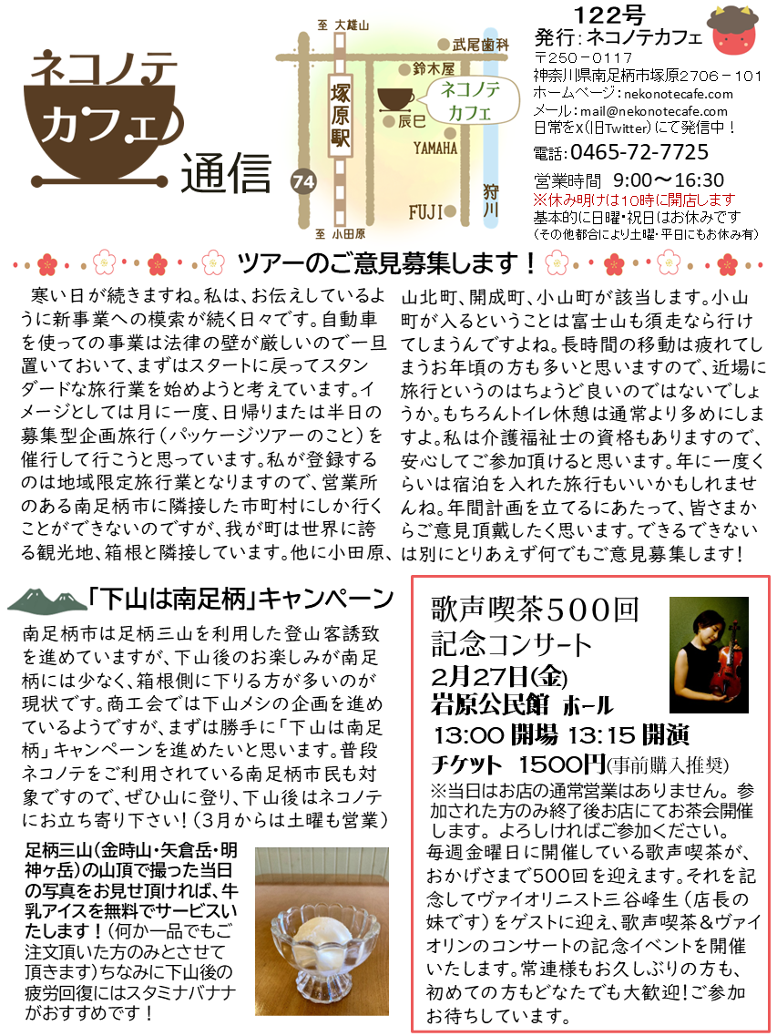 「ネコノテ通信」は月初めに新聞の折り込みにもいれておりますが、 ネコノテカフェからのお知らせやその月のイベント情報、その他もろもろ ネコノテカフェからの情報が満載!です。まだ見たことの無い方は一度見てみてください。