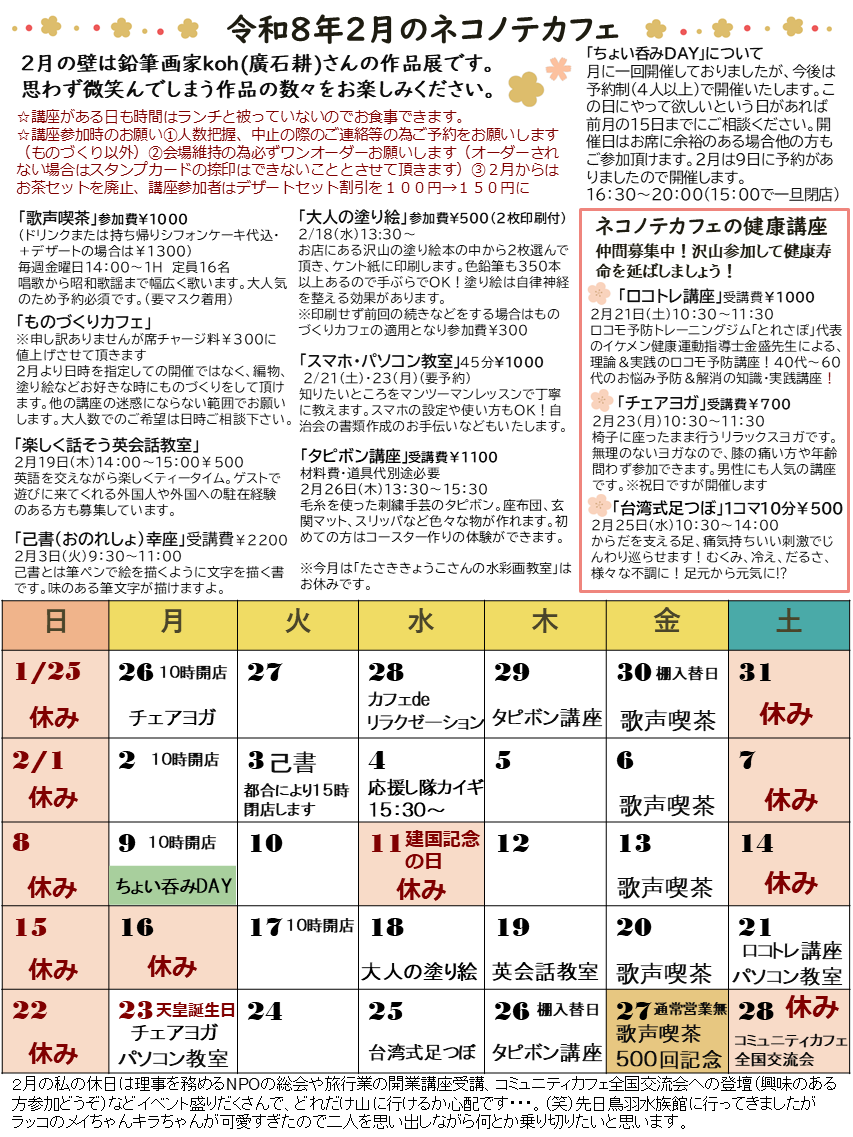 イベント・講座情報 mail@nekonotecafe.com 0465-72-7725