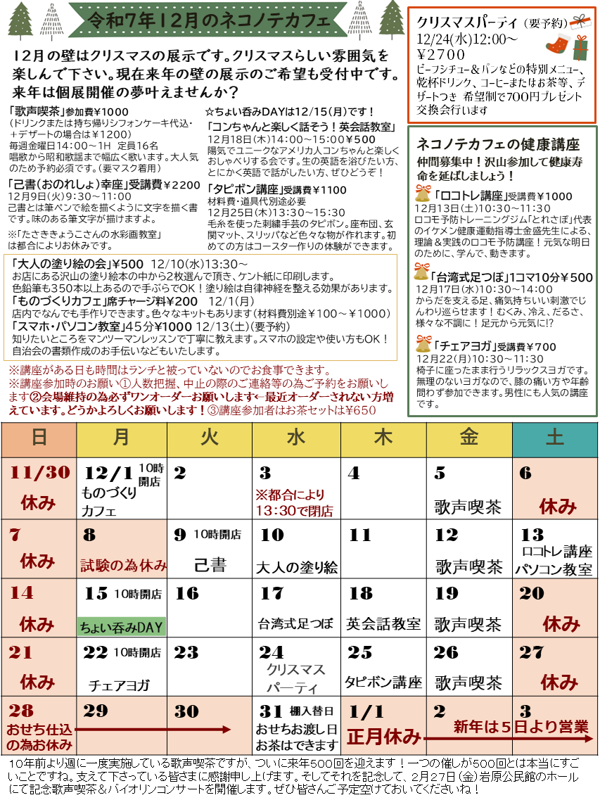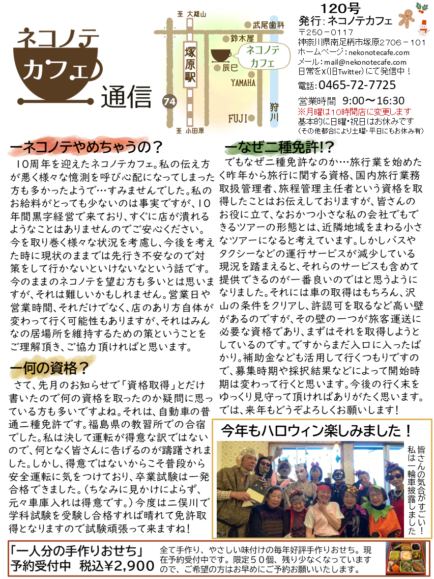 「ネコノテ通信」は月初めに新聞の折り込みにもいれておりますが、 ネコノテカフェからのお知らせやその月のイベント情報、その他もろもろ ネコノテカフェからの情報が満載!です。まだ見たことの無い方は一度見てみてください。